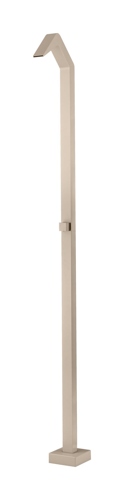 Ducha exterior Niagara en acero inoxidable S.316 con acabado moka. Mantiene el diseńo con rociador cascada rectangular (chorro ancho y envolvente), mando 1/4 de vuelta y fijación a suelo. Ideal para piscina y jardín con estética cálida y elegante.